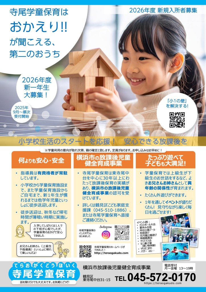 場所はいずれも寺尾学童の本館(横浜市鶴見区東寺尾中台31-15)です。