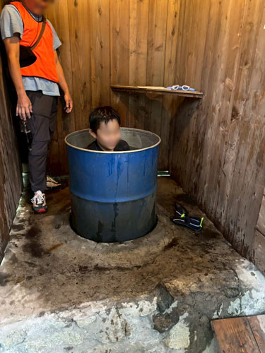 川でたっぷり遊んで冷えた体は、水之元名物のドラム缶の五右衛門風呂で温めます!