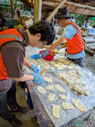 特に頼りになるのが、上級生やOBのメンバーたち。班の年下の子たちに優しく教えながら、調理をリードしてくれます。みんなで手を動かし、鍋をじっと見つめ、時には大人に「これでいいですか?」と助けを求めたり…。班ごとに協力しながら一つのものを作り上げる姿は、本当にたくましく、見ているだけで胸が熱くなります。