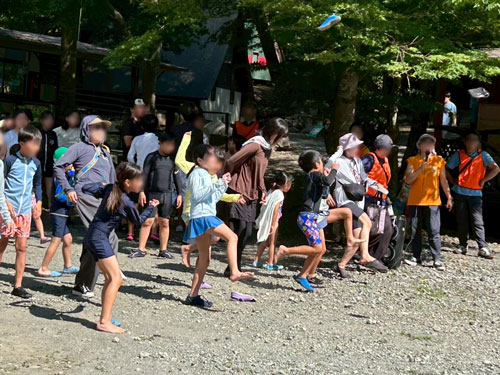 そして、スイカ割りの後は、学童合宿の伝統行事…「カレー肉争奪! 靴とばし大会」です!