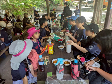 ついに、愛情たっぷりのカレーが完成! 「いただきまーす!」 の元気な声がキャンプサイトに響き渡ります。