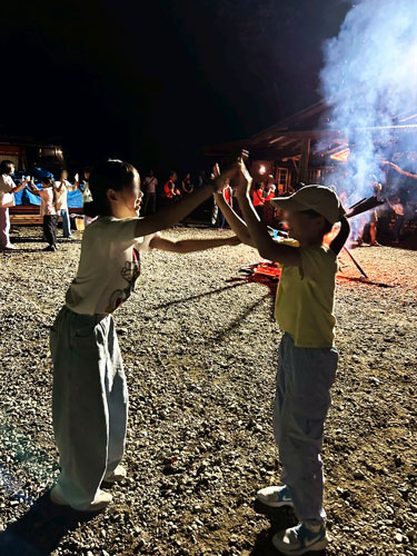 大きな炎を囲んで、火が燃え尽きるまでみんなで歌って踊って、最高に盛り上がりました! 火の光に照らされた子どもたちの顔は、ちょっぴり大人びて見えます。この合宿で深まった絆を確かめ合う、感動的な時間となりました。
